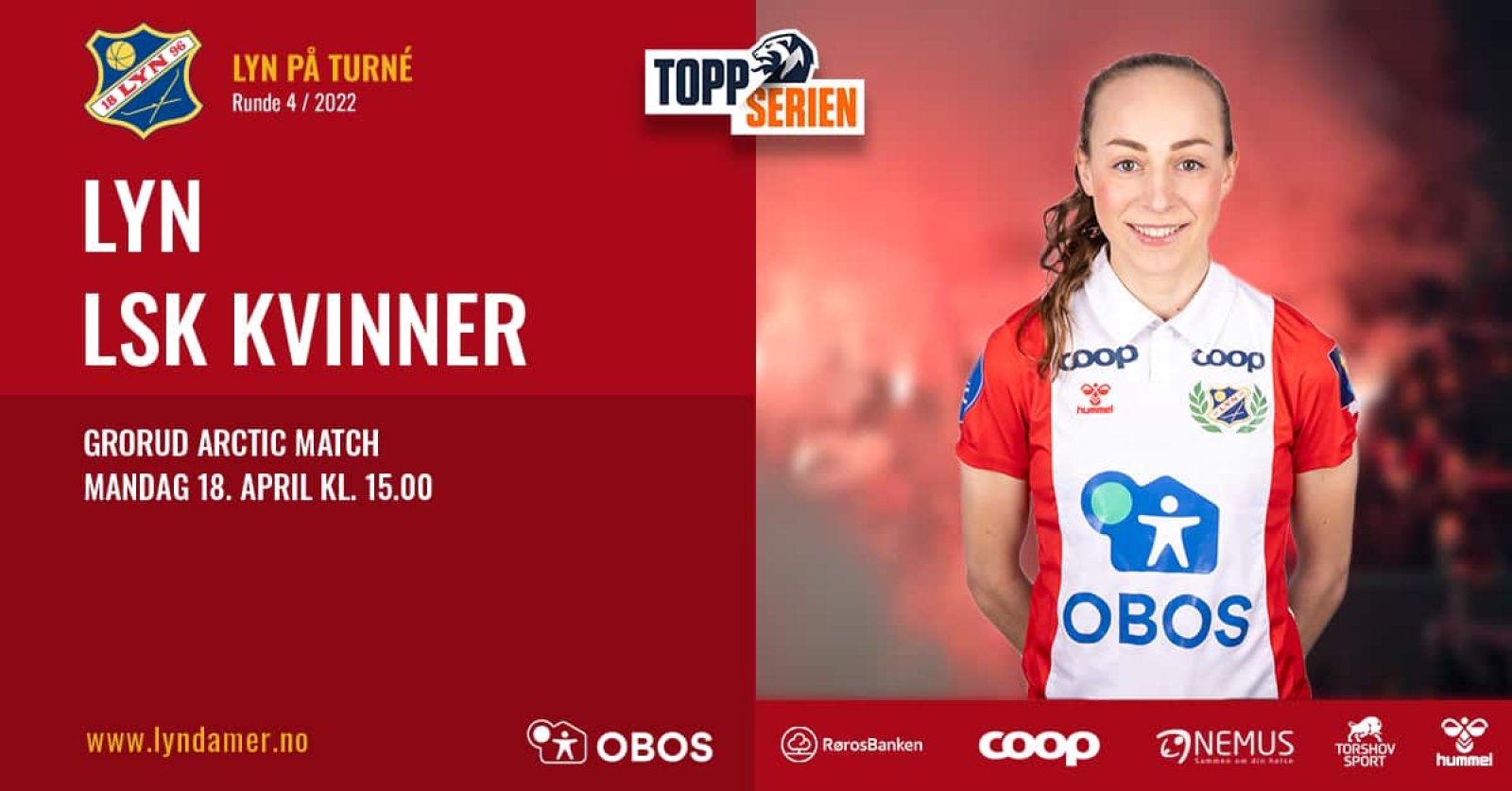 2. påskedag spilles serierunde 4 i Toppserien og vi får besøk av LSK Kvinner. Nok en gang må en av våre hjemmekamper flyttes til Grorud Arctic Match. Denne gangen er det kampen mot LSK Kvinner.