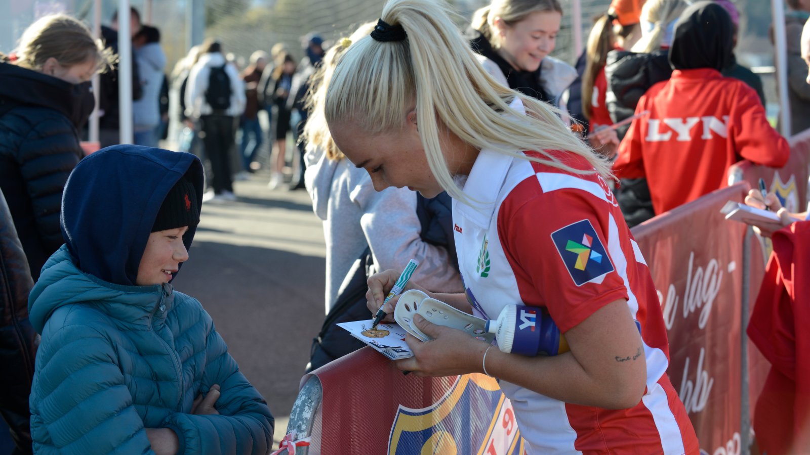 Spillerkort og bilder etter kamp – Det merkes av et eget område der alle som ønsker kan få hilse på spillerne etter kamp, og samtidig få med seg signerte fotballkort og selfies. Her tar alle spillerne seg god tid til alle fremmøtte.