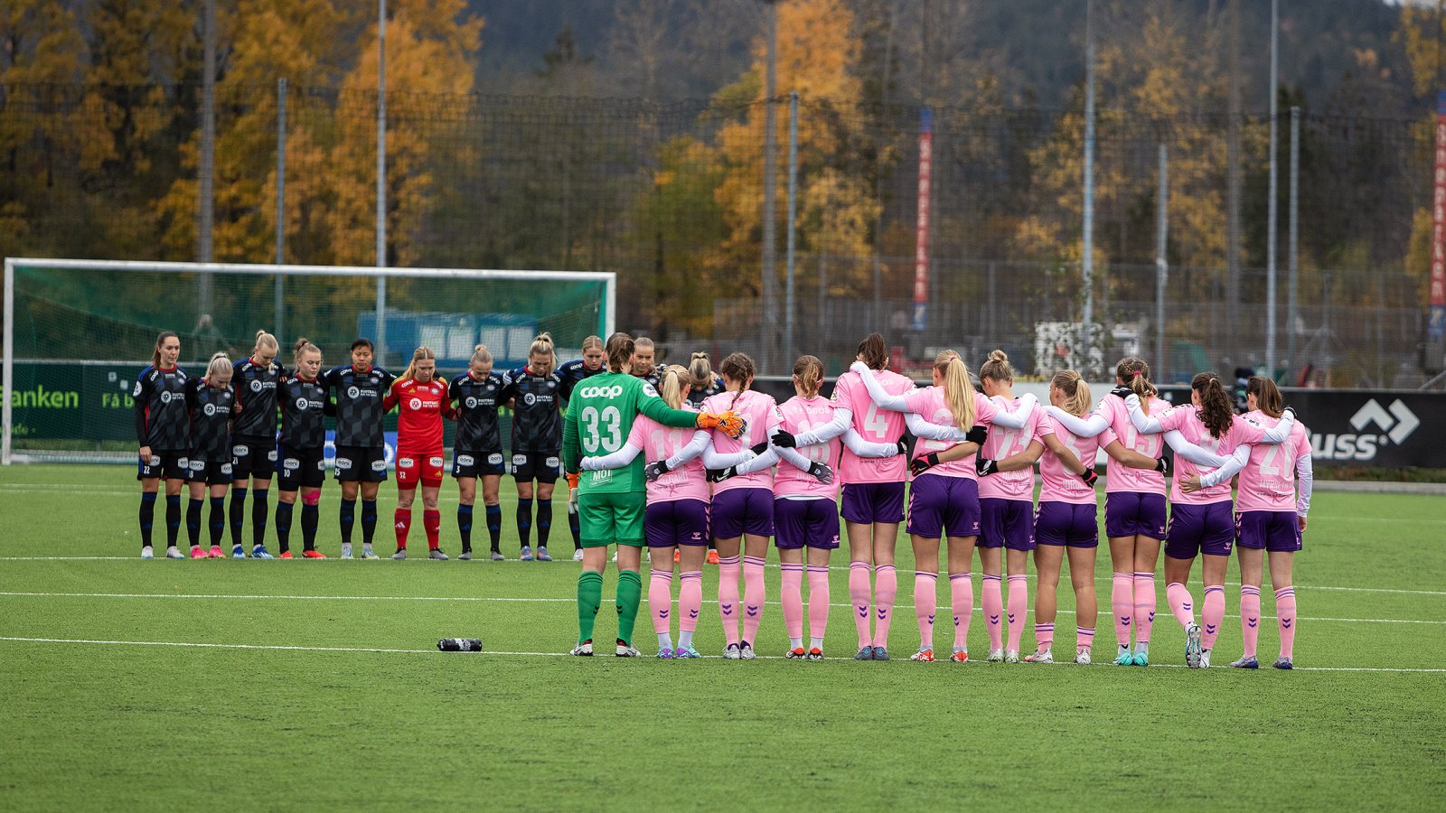 Lyn-damene entret banen i pene rosa drakter i anledning Rosa sløyfe, og vant som alltid den høyst uoffisielle kampen om ha de peneste draktene. Før kampstart ble det avholdt 1 minutt stillhet for terroren som skjedde i Belgia tidligere i forrige uke, der flere svensker ble drept i forbindelse med landskampen mellom Belgia og Sverige. Hele fotball-Norge står sammen mot de grufulle handlingene.